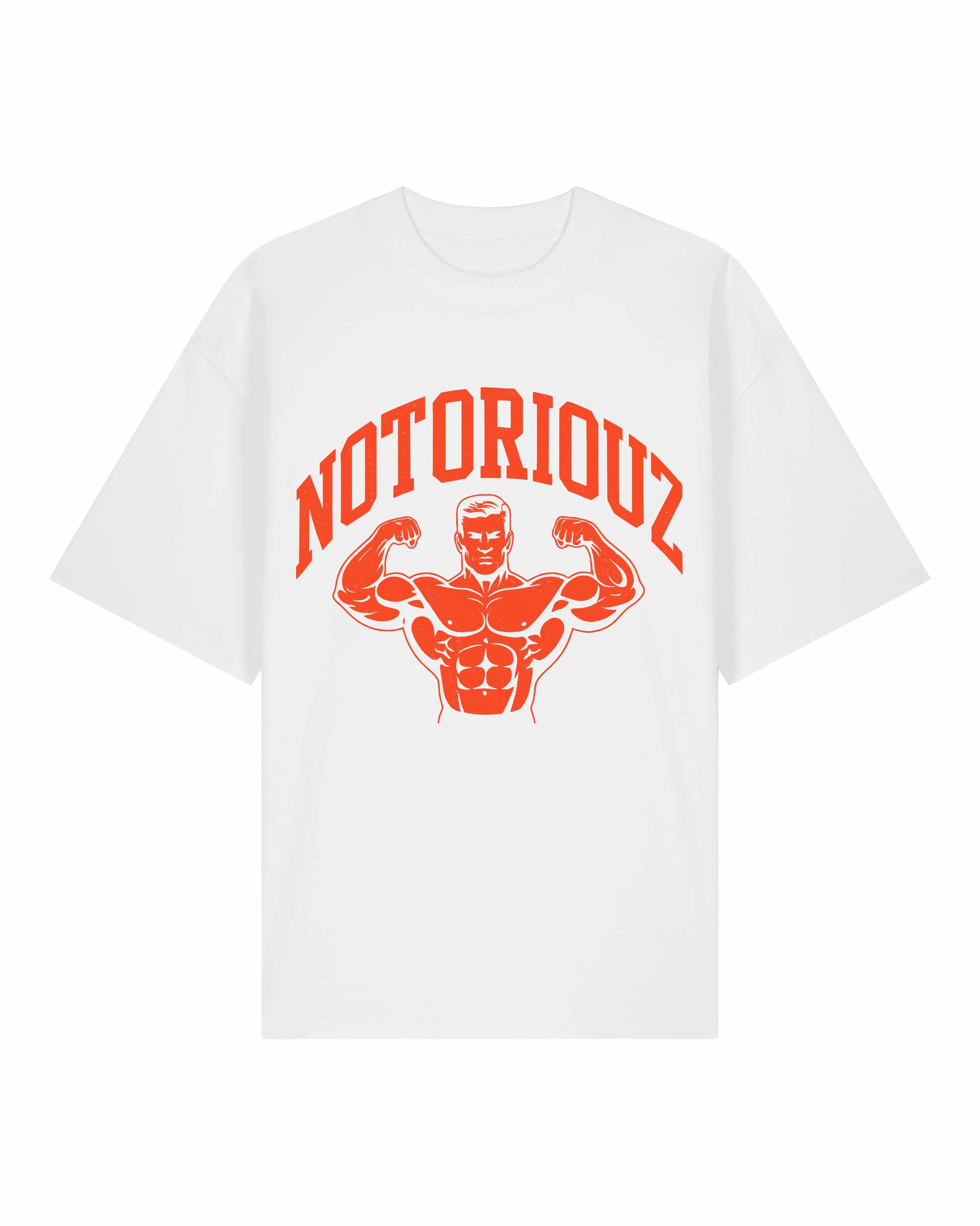 Das ikonische Design mit dem Bodybuilder-Print und dem markanten Notoriouz Schriftzug steht für Kraft, Disziplin und echten Ehrgeiz.
