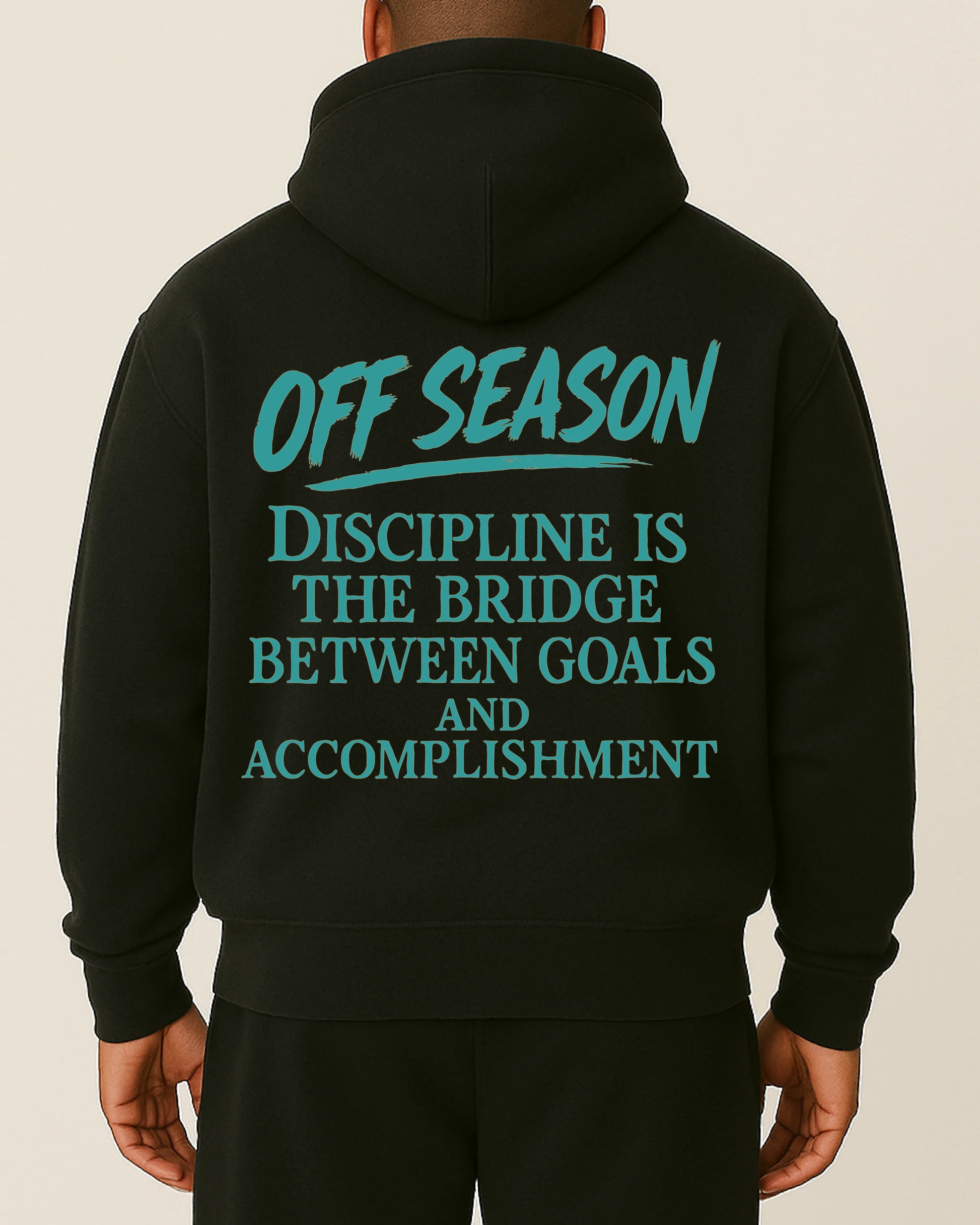 Der OFF SEASON “Discipline Bridge – Blue Edition” Hoodie von Notoriouz Sportswear steht für alles, was die Off Season ausmacht – harte Arbeit, absolute Disziplin und unbeugsame Motivation.