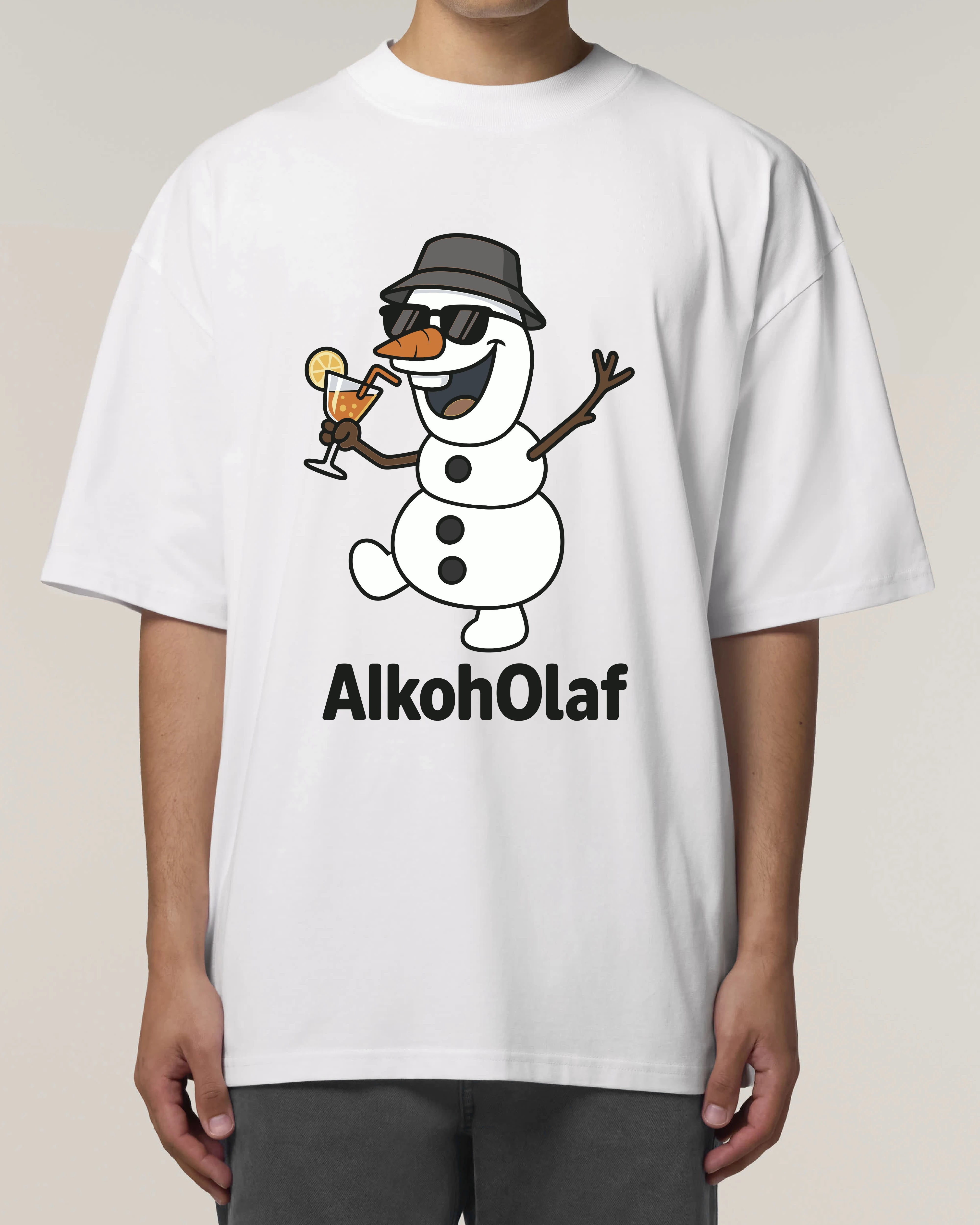 Das „AlkohOlaf“ T-Shirt zeigt einen entspannten Schneemann mit Sonnenbrille, Hut und Cocktailglas – bereit für Après-Ski, Winterpartys oder einfach ein frostiges Feierabendbier.