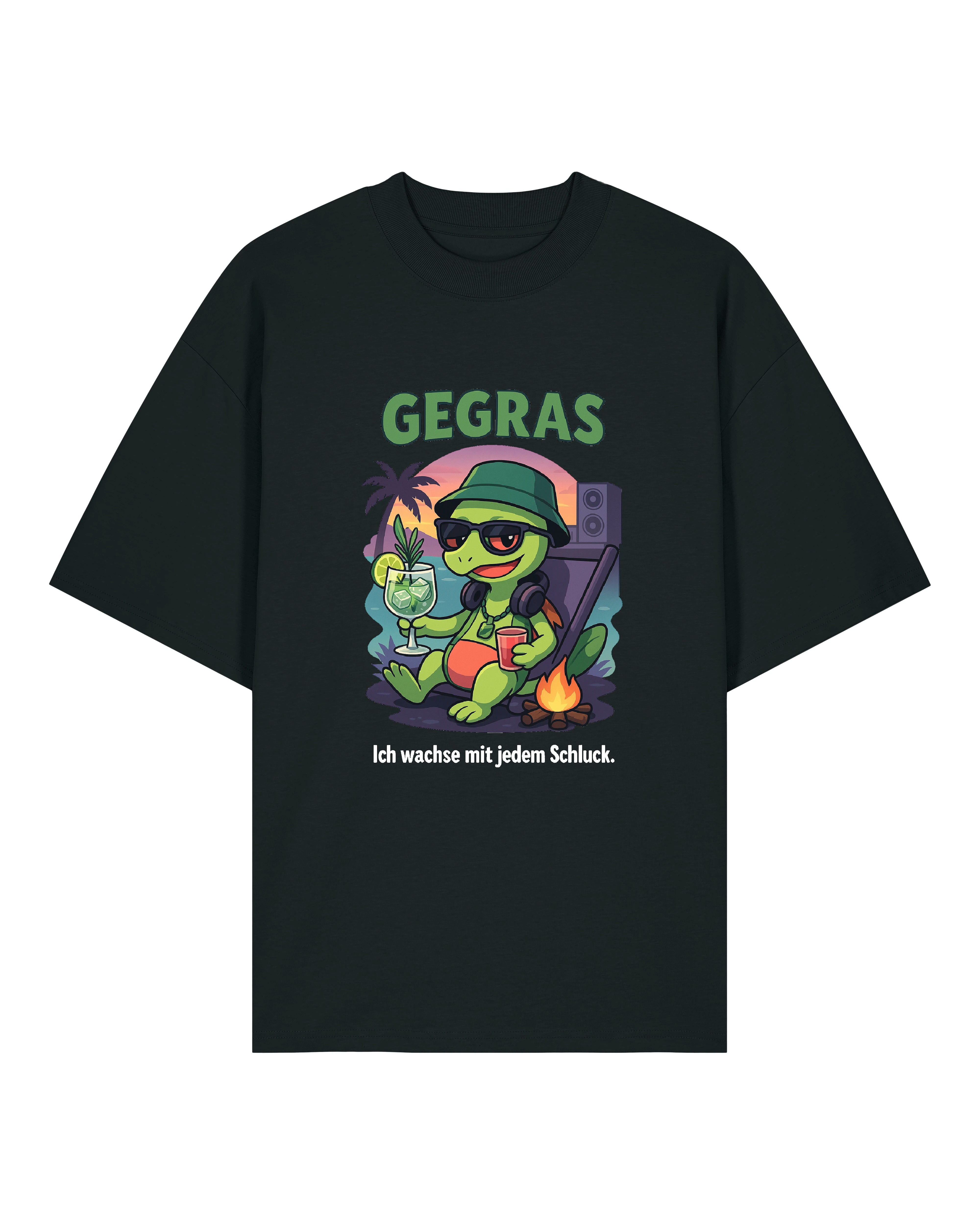 Chillen, wachsen, genießen – mit dem Gegras T-Shirt wird jedes Festival, jeder Grillabend und jede Party noch entspannter. Das coole Motiv zeigt Gegras in lässiger Pose mit Drink und Spruch "Ich wachse mit jedem Schluck". Perfekt für alle, die gerne feiern, relaxen und dabei Humor zeigen. In Schwarz, Weiß und Grau erhältlich, aus hochwertiger Baumwolle für besten Tragekomfort.