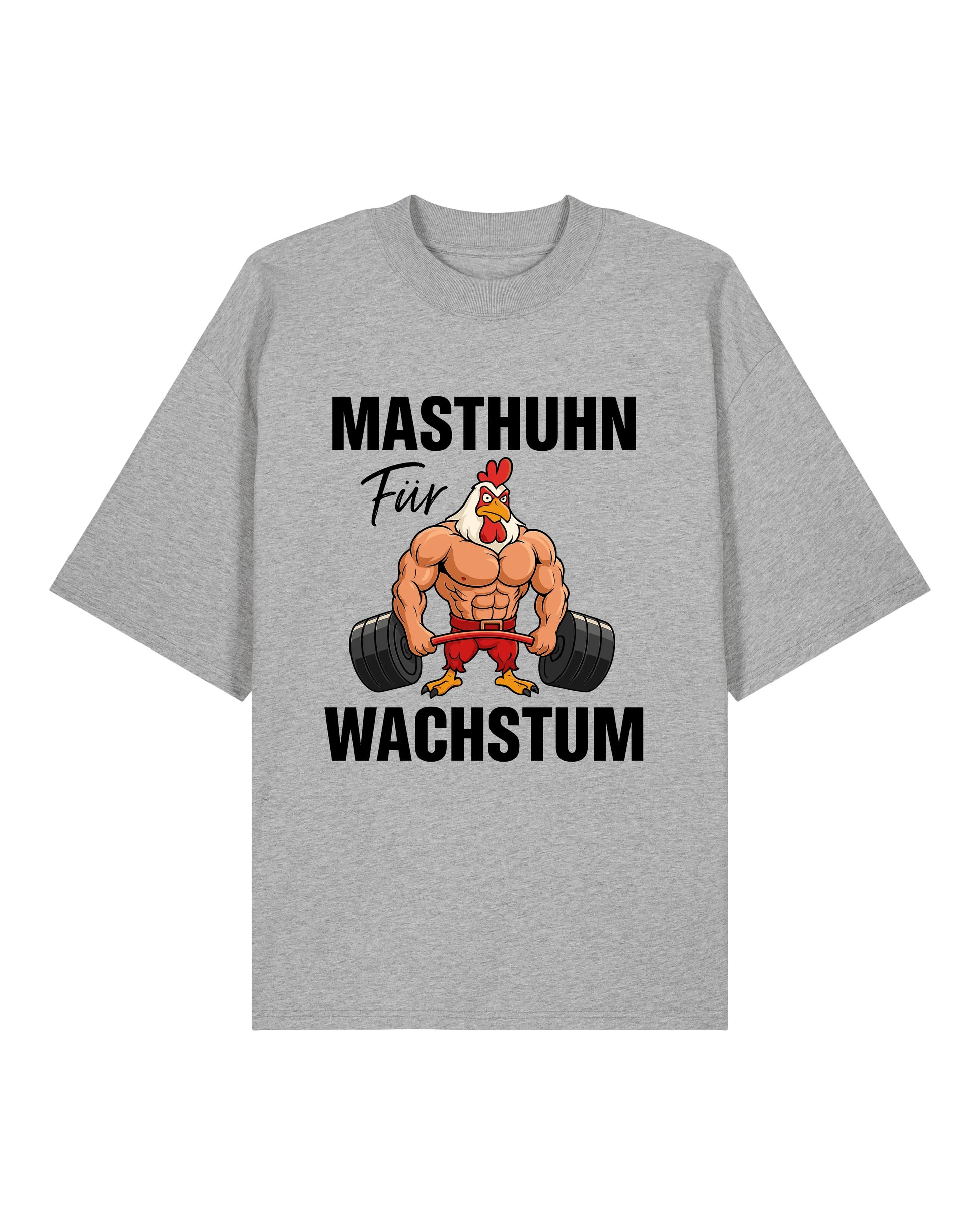 Mit dem Masthuhn T-Shirt von GhostGym setzt du im Gym ein Statement. Das Design mit dem muskulösen Huhn und dem Aufdruck „Masthuhn für Wachstum“ sorgt garantiert für Aufmerksamkeit und Motivation beim Training. Durch den Oversize Fit eignet es sich perfekt als Pumpcover für intensive Workouts, lässt sich aber auch entspannt im Alltag tragen.