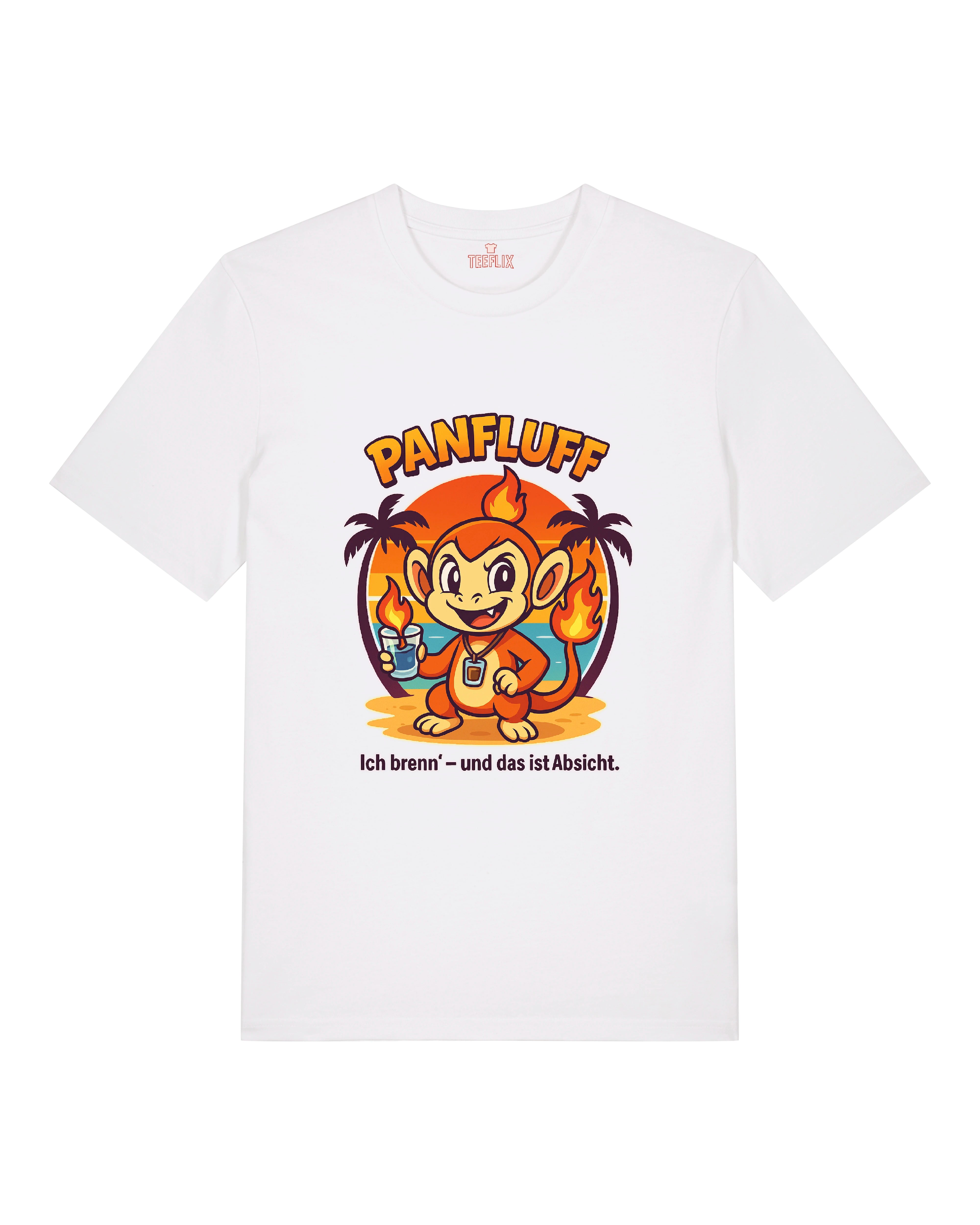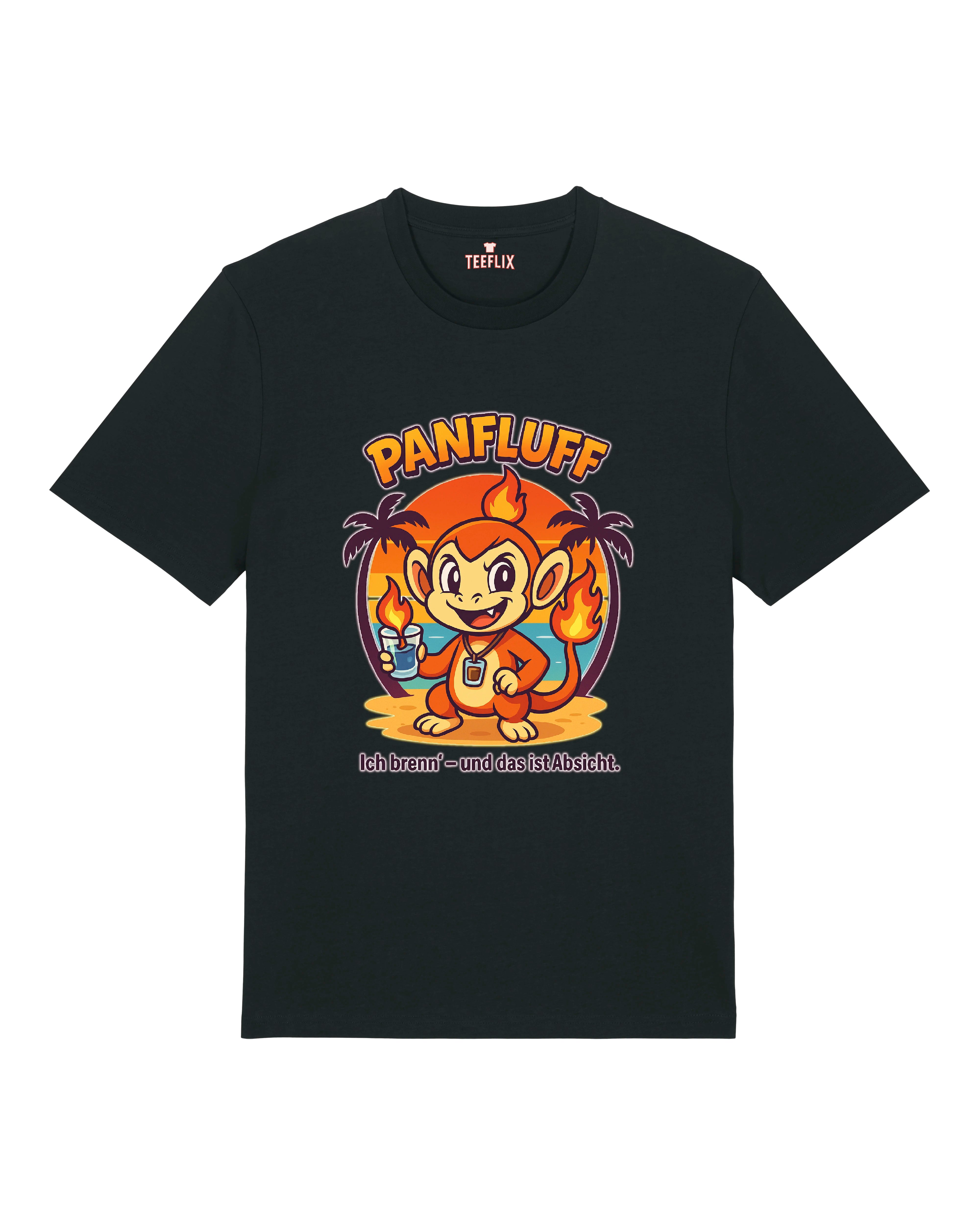 🔥 Bereit, zu brennen? Mit unserem „PANFLUFF“-Shirt bist du der Funke auf jeder Sommerparty! Inspiriert von einem flammenden Freund mit großem Durst und noch größerem Stil, verbindet dieses T-Shirt Humor, Popkultur und tropische Vibes in einem Design.