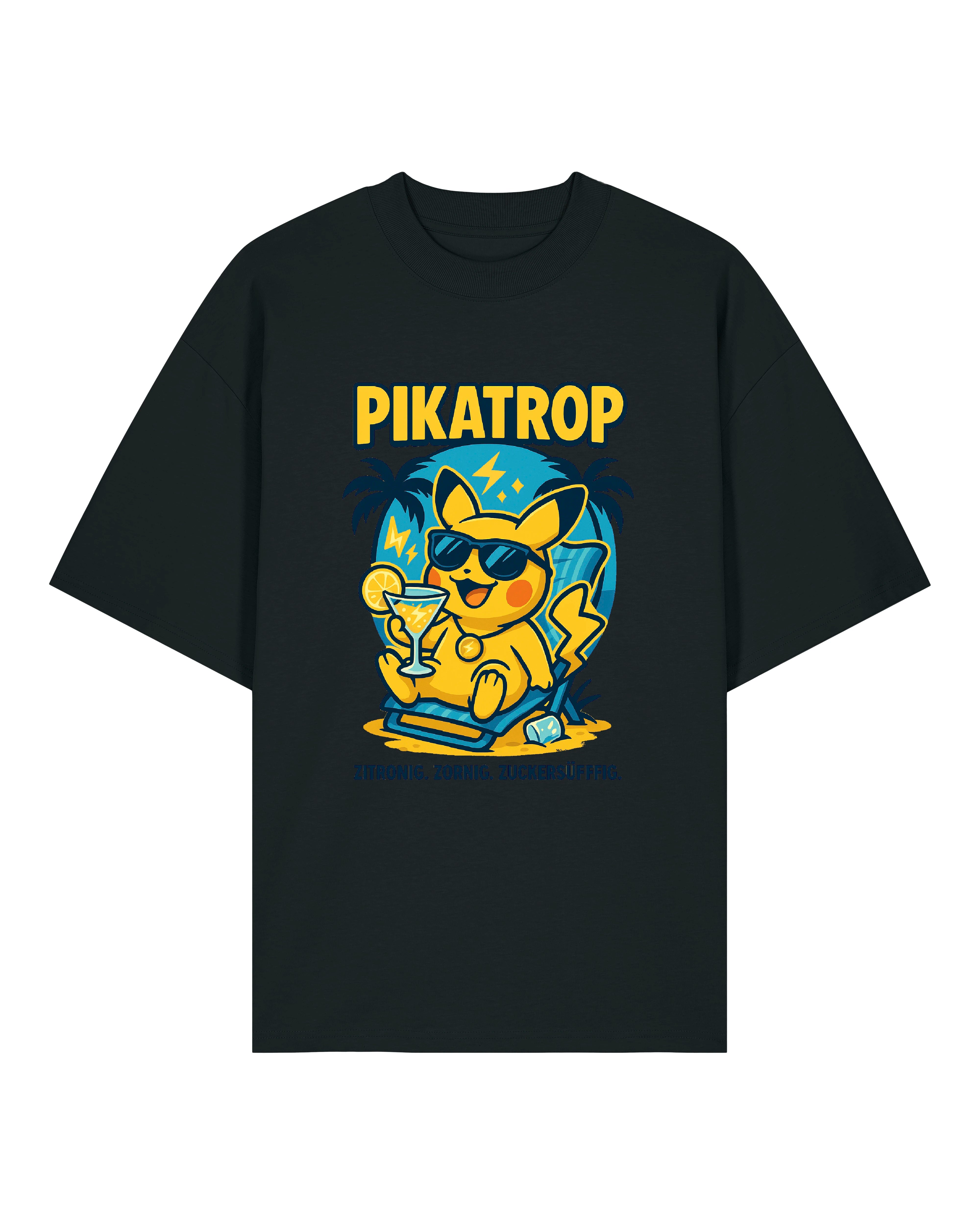 Sommer, Sonne, Zitronenpower! Unser „Pikatrop“-T-Shirt bringt elektrisierende Ferienvibes direkt auf deinen Bauch. Der freche Blitzfreund chillt mit Sonnenbrille und Drink auf der Liege – perfekt für Strand, Balkonien oder einfach nur als humorvolles Statement.