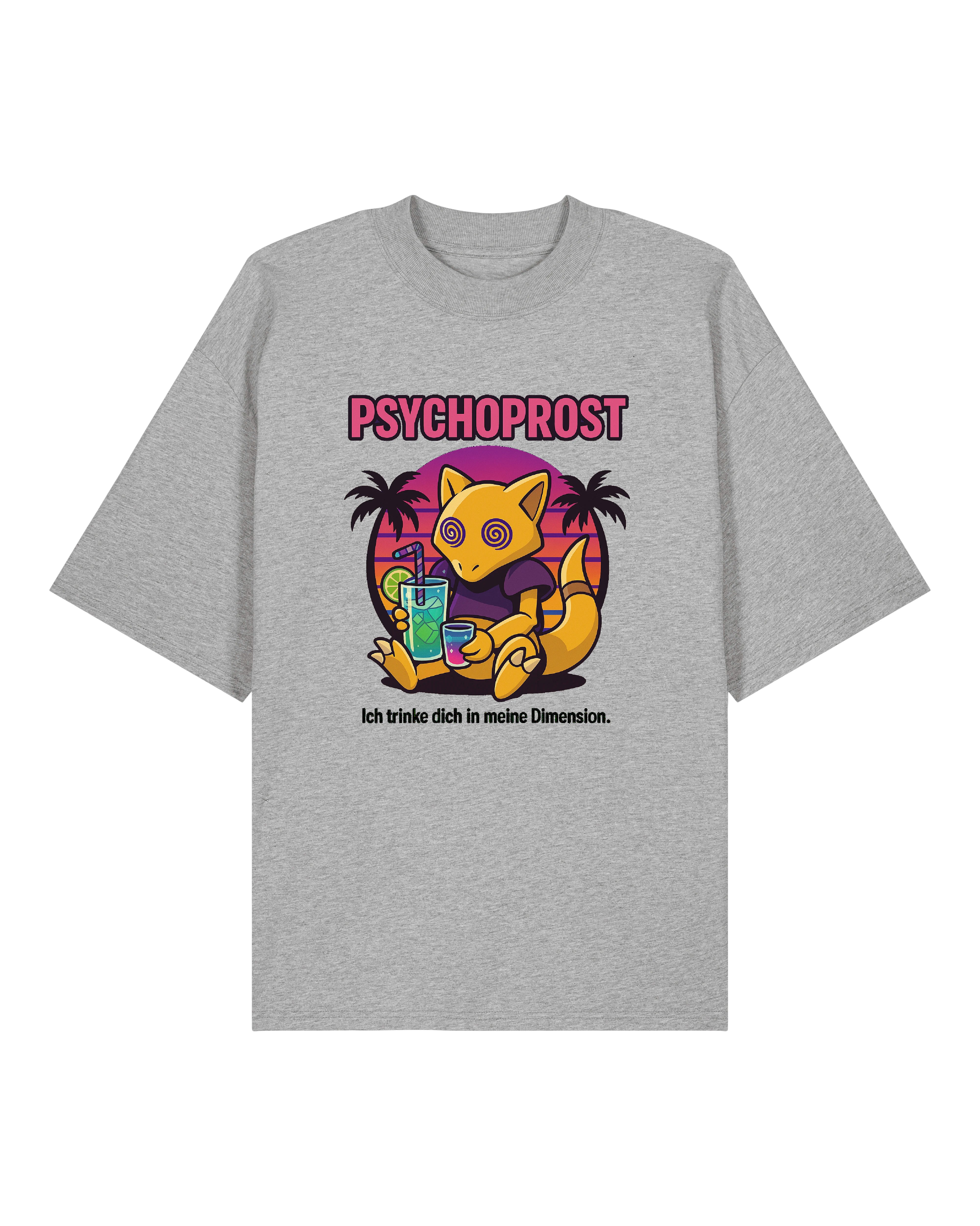 Tauche ein in andere Dimensionen – mit dem „Psychoprost“ T-Shirt zeigst du deinen Humor auf ganz besondere Weise. Das stylische Motiv zeigt ein entspanntes Hypnose-Pokemon mit Cocktail in der Hand und dem Spruch: „Ich trinke dich in meine Dimension.“ Perfekt für Partys, Festivals, oder einfach zum Chillen mit Freunden. Hochwertiges Unisex-Shirt, erhältlich in Schwarz, Weiß und Grau. Super bequem, angenehm weich und langlebig.