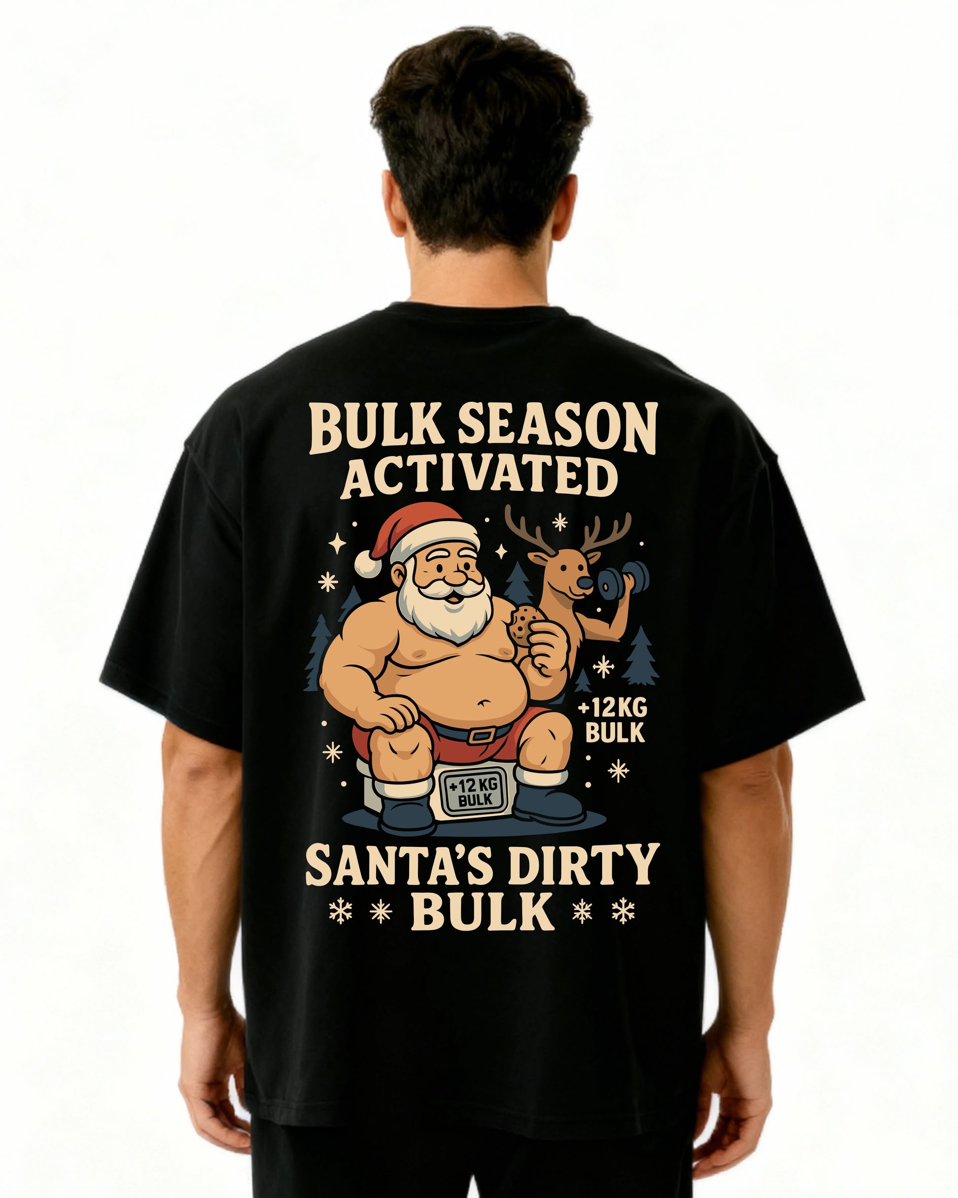 Das Santa’s Dirty Bulk Pumpcover ist die witzigste und gleichzeitig massigste Hommage an die wichtigste Jahreszeit im Gym: Bulk Season. Dieses Oversized T-Shirt zeigt einen ultra-massiven Weihnachtsmann und sein rentierstarkes Bulk-Team – und bringt damit humorvoll auf den Punkt, worum es im Winter wirklich geht: Kalorien rauf, Gewichte hoch!
